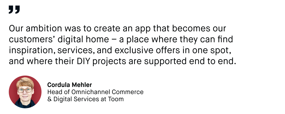 Our goal is for the app to become our customers’ digital home – a central hub where they can find inspiration, support, and services for their DIY projects. The result is an optimized, consistent customer experience across all touchpoints – and strengthened customer loyalty.